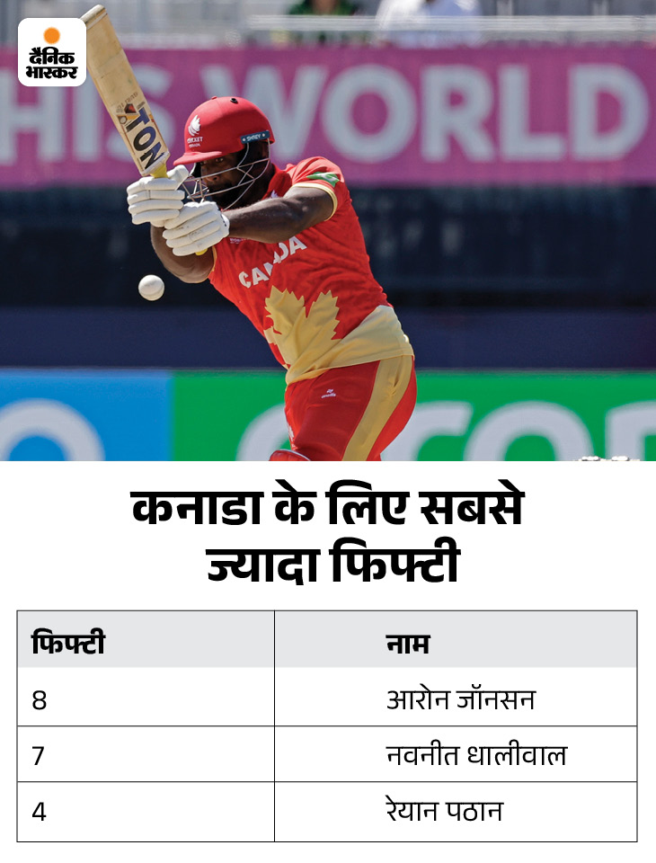 टी-20 इंटरनेशनल में कनाडा के लिए सबसे ज्यादा फिफ्टी