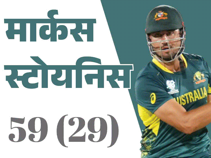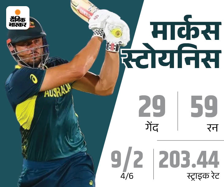 ऑस्ट्रेलिया की ओर से पांचवें नंबर पर बैटिंग करने आए मार्कस स्टोयनिस ने 29 बॉल पर 59 रन की पारी खेली। स्टोयनिस और ट्रैविस हेड के बीच चौथे विकेट के लिए 80 रन की साझेदारी हुई। स्टोयनिस को प्लेयर ऑफ मैच चुना गया।