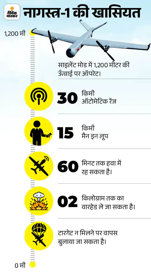 • आत्मघाती ड्रोन को 1,200 मीटर की ऊंचाई पर ऑपरेट किया जाता है।