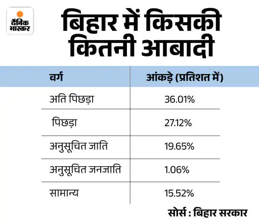 - जातीय गणना की सर्वे रिपोर्ट सार्वजनिक होने के बाद सरकार ने आरक्षण का दायरा बढ़ाकर ओबीसी, ईबीसी, दलित और आदिवासियों का आरक्षण 65% कर दिया था।