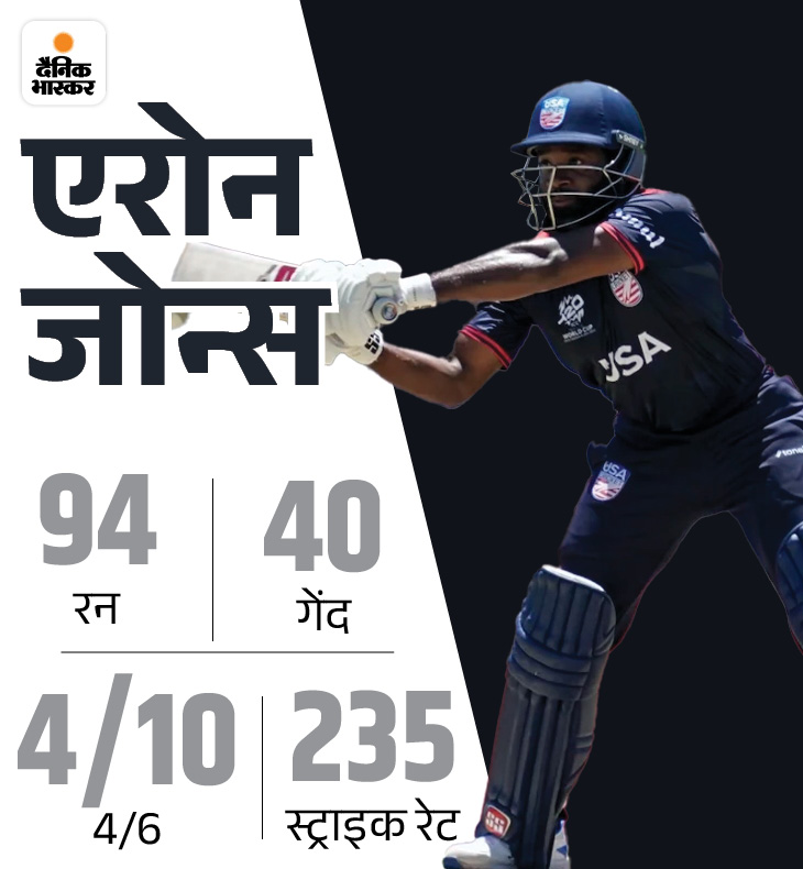 टीम ने स्टीवन टेलर के रूप में पहला विकेट शून्य के स्कोर पर गंवाया। इसके बाद बल्लेबाजी करने आए एरोन जोन्स ने मैच पलट दिया। उन्होंने 40 बॉल पर 94 रन बनाए। पारी में 10 चौके और 4 सिक्स लगाए और अमेरिका ने यह मैच 7 विकेट से जीत लिया।