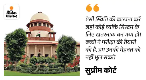सुप्रीम कोर्ट में NEET UG विवाद पर ग्रेस मार्क्स से जुड़ी याचिका पर मंगलवार को सुनवाई हुई। अदालत ने कहा, ‘अगर किसी की ओर से 0.001% भी लापरवाही हुई है तो उससे पूरी तरह निपटा जाना चाहिए। बच्चों ने परीक्षा की तैयारी की है, हम उनकी मेहनत को नहीं भूल सकते हैं।’ बेंच ने सरकार और NTA से यह भी कहा कि कल्पना कीजिए कि सिस्टम के साथ धोखाधड़ी करने वाला व्यक्ति डॉक्टर बन जाता है, वह समाज के लिए और भी ज्यादा खतरनाक है। इससे पहले 2015 में सुप्रीम कोर्ट ने इसी तरह की टिप्पणी कर ऑल इंडिया प्री मेडिकल टेस्ट (AIPMT) की परीक्षा रद्द की थी। तब कोर्ट का कहना था, ‘एक भी फर्जी डॉक्टर बनता है तो पूरी परीक्षा रद्द होनी चाहिए। इस बात के सबूत हैं कि परीक्षा में इलेक्ट्रानिक डिवाइसेज का इस्तेमाल हुआ है, लेकिन कितने स्टूडेंट्स ने इसका इस्तेमाल किया, ये नहीं कहा जा सकता। ऐसे में परीक्षा रद्द करना जरूरी है।’