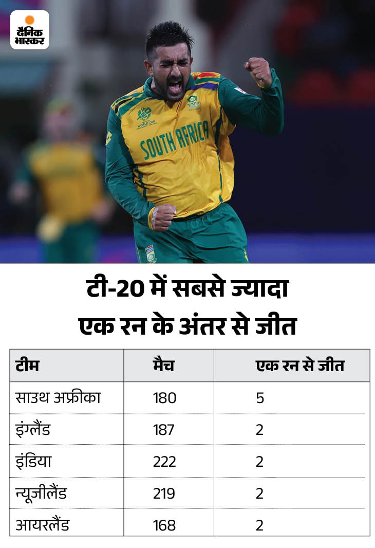 1. टी-20 में साउथ अफ्रीका ने सबसे ज्यादा 5 बार एक रन से मैच जीता