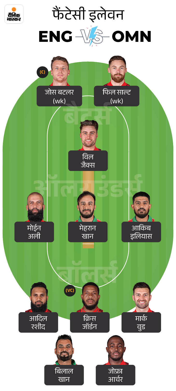 टी-20 वर्ल्ड कप में इंग्लैंड Vs ओमान की फैंटेसी-11: जोस बटलर ने टूर्नामेंट में 150 की स्ट्राइक से बनाए हैं रन, चुन सकते हैं कैप्टन