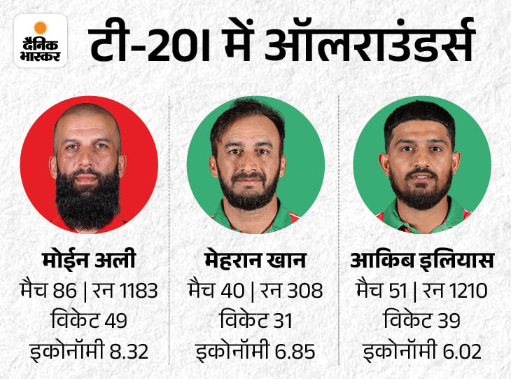 ऑलराउंडर्स के तौर पर मोईन अली, मेहरान खान, आकिब इलियास को टीम में चुन सकते हैं।