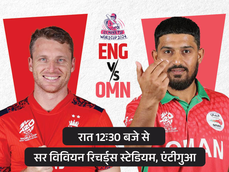 टी-20 वर्ल्ड कप में 28वां मुकाबला इंग्लैंड और ओमान के बीच रात 12ः30 बजे से एंटीगुआ के सर विवियन रिचर्ड्स स्टेडियम में खेला जाएगा। टीम पहली बार आमने-सामने होंगी। ग्रुप -सी में ओमान को पिछले तीनों मुकाबले में हार मिली है और उसका सफर टी-20 में खत्म हो गया है। वहीं, इंग्लैंड के पास अभी भी मौका है।