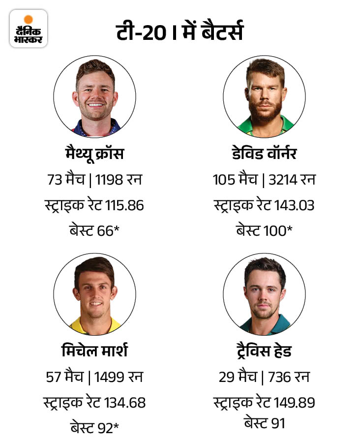 बल्लेबाज के तौर पर डेविड वॉर्नर, मिचेल मार्श और ट्रैविस हेड को शामिल कर सकते हैं।