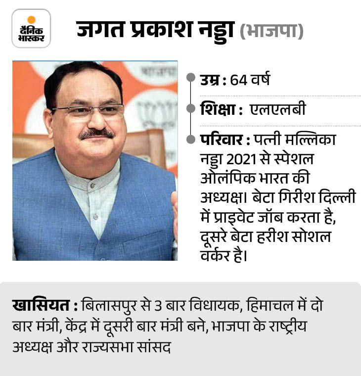 हिमाचल से ताल्लुक रखने वाले जगत प्रकाश नड्डा को प्रधानमंत्री नरेंद्र मोदी ने अपनी सरकार में बतौर कैबिनेट मिनिस्टर शामिल किया है। BJP के राष्ट्रीय अध्यक्ष के तौर पर नड्डा इसी महीने 30 जून को अपना दूसरा कार्यकाल पूरा करने जा रहे हैं। 2024 का लोकसभा चुनाव भाजपा ने उन्हीं की अगुवाई में लड़ा। हिमाचल के बिलासपुर से संबंध रखने वाले जेपी नड्डा इस समय गुजरात से राज्यसभा के मेंबर हैं। पूरी खबर पढ़ें..