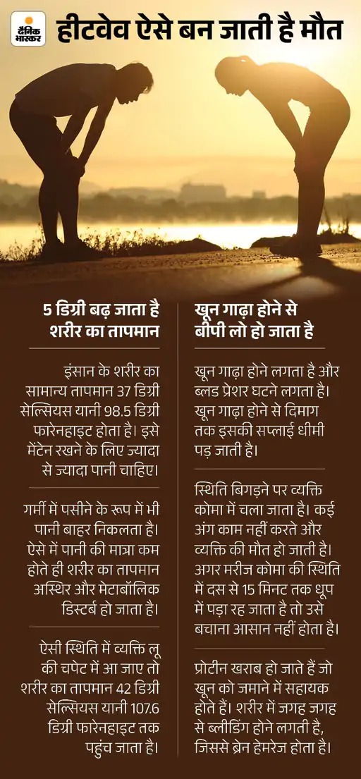 - हीटवेव का खतरा प्रेग्नेंट महिलाओं, 12 वर्ष से कम उम्र के बच्चों और बुजुर्गों को ज्यादा होता है। इसके अलावा हार्ट पेशेंट, मधुमेह, बीपी जैसी बीमारी वाले मरीजों को गर्मी से बेहद परेशानी होती है।