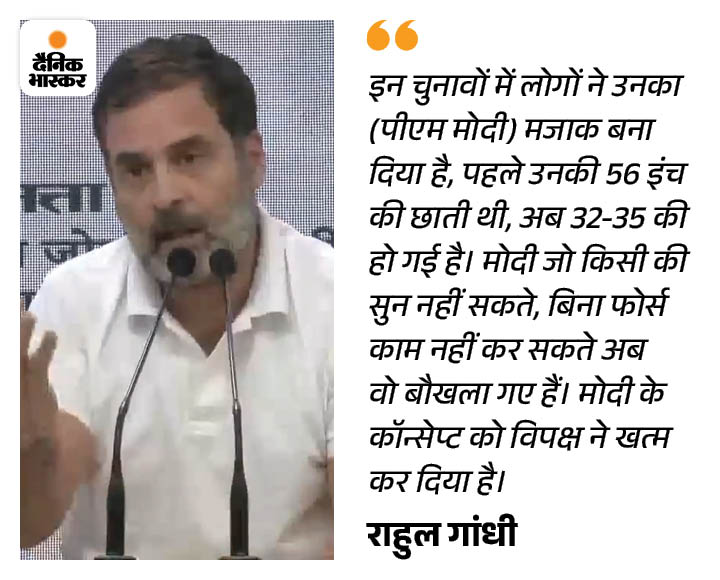 राहुल ने ये भी कहा, पेपर लीक के पीछे कारण यह है कि एजुकेशन सिस्टम को भाजपा के पेरेंट ऑर्गनाइजेशन ने कैप्चर कर लिया है। जब तक इसे पलटा नहीं जाएगा, तब तक पेपर लीक जारी रहेगा। मोदी जी ने यह होने दिया है, जो कि एंटी-नेशनल एक्टिविटी है। पहले पीएम का 56 इंच का सीना था, अब 32-35 हो गया है।