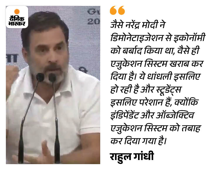 राहुल गांधी ने पेपर लीक मुद्दे पर दिल्ली में प्रेस कॉन्फ्रेंस की। इसमें पीएम मोदी पर भी निशाना साधा।