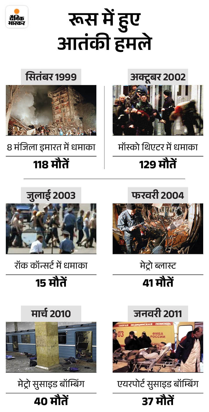 अफगानिस्तान ने मुसलमानों पर इसी तरह के अत्याचार रूस ने सोवियत काल के दौरान किए थे। पुतिन 18 मार्च को 5वीं बार रूस के राष्ट्रपति बने। 5 दिन बाद यह बड़ा आतंकी हमला हुआ। फिलहाल पुतिन ने हमले पर कोई बयान नहीं दिया है।