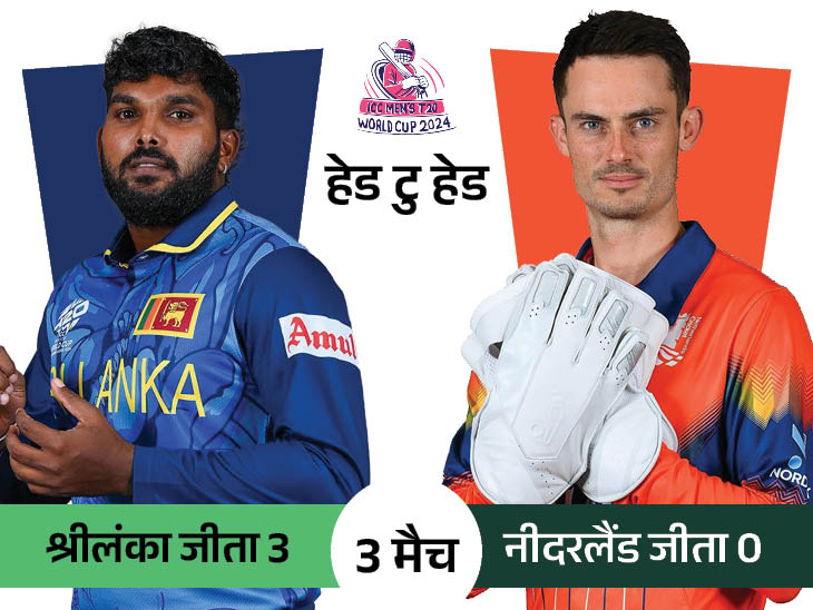 नीदरलैंड अब तक श्रीलंका के खिलाफ टी-20 में नहीं जीत पाया है। दोनों टीमों के बीच कुल 3 मुकाबले हुए है। जिसमें से तीनो नीदरलैंड ही जीता है। दोनों हमेशा वर्ल्ड कप में ही भिड़ी हैं। दोनों टीमों के बीच आखिरी मुकाबला 2022 वर्ल्ड कप में हुआ था, जहां श्रीलंका 16 रन से जीता था।
