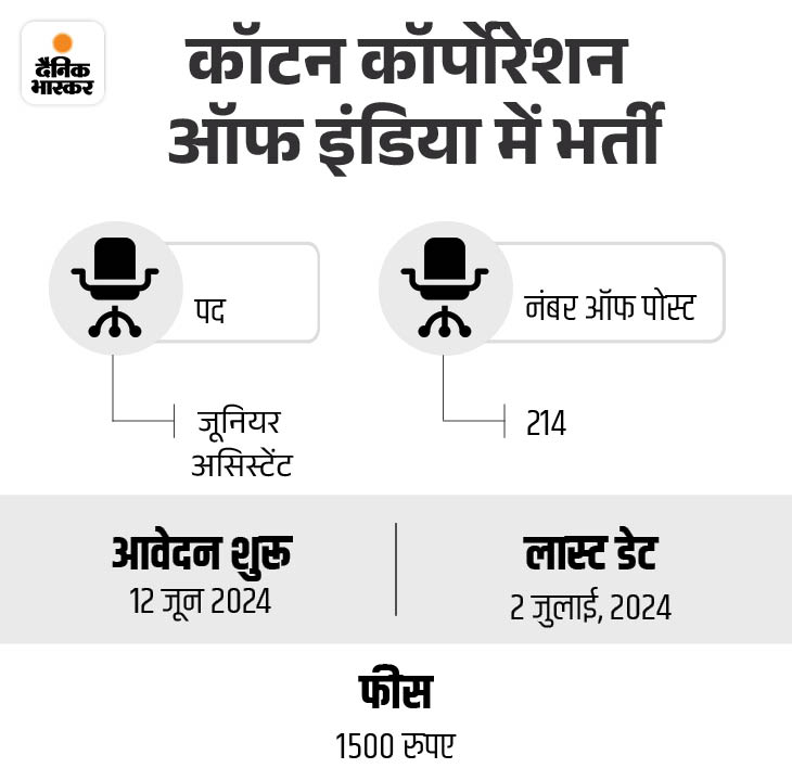 सरकारी नौकरी: कॉटन कॉर्पोरेशन ऑफ इंडिया में 214 पदों पर निकली भर्ती, ग्रेजुएट्स को मौका, सैलरी 1 लाख 40 हजार तक