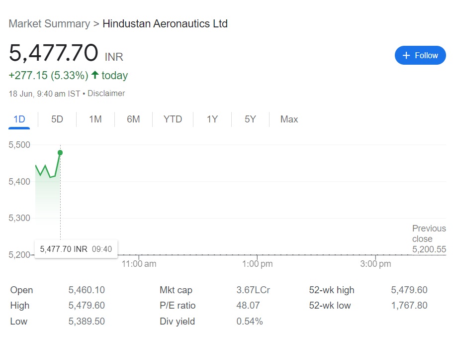 HAL के शेयर में 5% से ज्यादा की तेजी