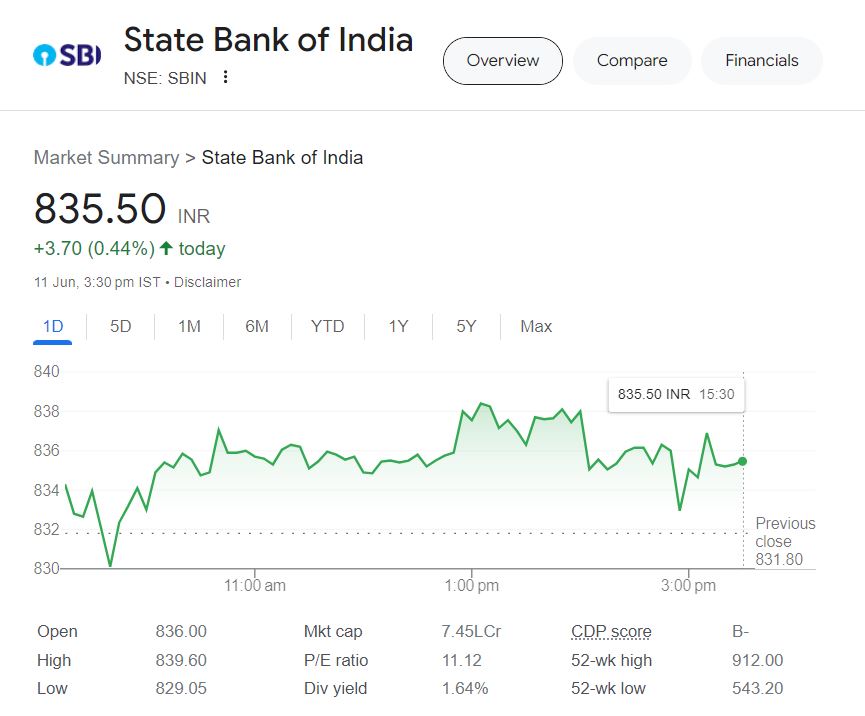 SBI का शेयर बीते एक महीने में 3.30% और पिछले छह महीने में 36.02% बढ़ा है। वहीं कंपनी के शेयर ने अपने निवेशकों को एक साल में 44.39% रिटर्न दिया है।