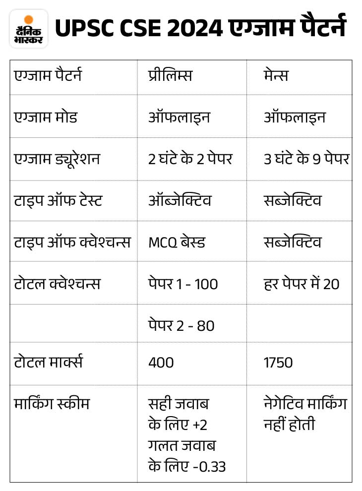 UPSC CSE एग्जाम तीन चरणों में होता है – प्रीलिम्स, मेन्स और इंटरव्यू। प्रीलिम्स एग्जाम क्वालिफाइंग नेचर का है यानी इसके मार्क्स फाइनल मेरिट लिस्ट में नहीं जुड़ते, लेकिन मेन्स देने के लिए प्रीलिम्स क्वालिफाई करना जरूरी है। हर साल लगभग 10 लाख से ज्यादा कैंडिडेट्स इस एग्जाम के लिए रजिस्ट्रेशन करते हैं। 2023 में प्रीलिम्स के लिए लगभग 14 लाख कैंडिडेट्स ने रजिस्ट्रेशन किया था। इनमें से 14,600 कैंडिडेट्स एग्जाम का सेकेंड स्टेज – मेन्स देने के लिए सिलेक्ट हुए थे।